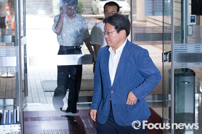 (서울=포커스뉴스) '국정원 여직원 감금사건'으로 기소된 강기정 전 의원이 공판에 참석하기 위해 6일 오전 서울 서초구 서울중앙지법으로 들어서고 있다.