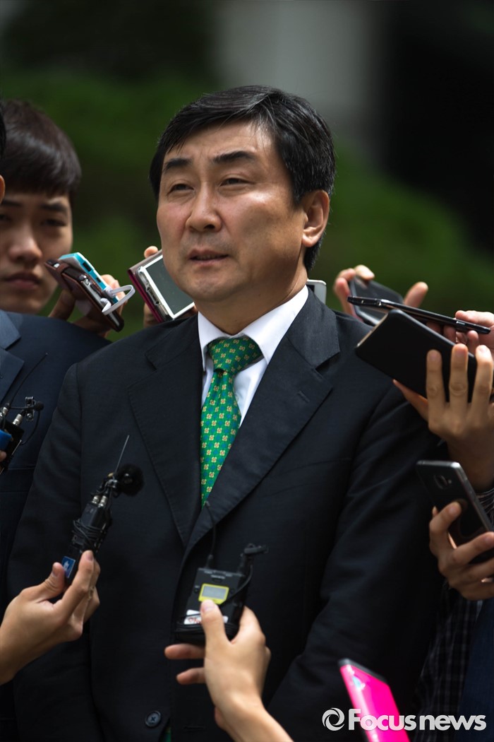 (서울=포커스뉴스) 2012년 대선을 앞두고 발생한 '국정원 여직원 감금 사건' 재판 선고가 내려진 6일 오전 서울 서초구 서울중앙지법 앞에서 이종걸 더불어민주당 의원이 재판 선고 후 법원 앞에서 취재진과 인터뷰를 하고 있다.