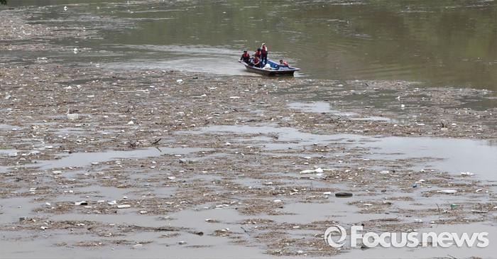 (옥천=포커스뉴스) 며칠간 이어진 중부지역 집중호우로 6일 오후 충북 옥천군 군복면 대청호 상류 일대에 쓰레기로 뒤덮혀 있다.