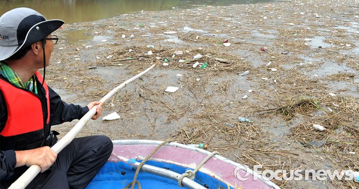 (옥천=포커스뉴스) 며칠간 이어진 중부지역 집중호우로 6일 오후 충북 옥천군 군복면 대청호 상류 일대에 쓰레기로 뒤덮혀 있다.