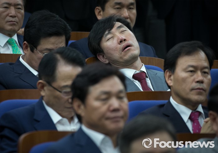 (서울=포커스뉴스) 6일 오후 서울 여의도 국회에서 열린 새누리당 의원총회에 참석한 하태경 의원이 피곤한 모습을 보이고 있다.