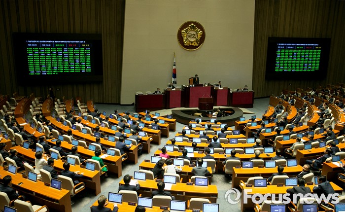 (서울=포커스뉴스) 6일 오후 서울 여의도 국회에서 열린 343회 국회(임시회) 8차 본회의에서 가습기살균제 사고 국정조사계획서 승인의 건이 재석 250인 중 만장일치로 통과되고 있다.