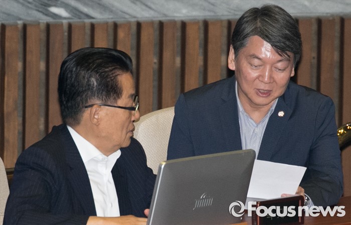(서울=포커스뉴스) 6일 오후 서울 여의도 국회에서 열린 343회 국회(임시회) 8차 본회의에 참석한 안철수(오른쪽) 국민의당 전 대표와 박지원 비상대책위원장이 대화하고 있다.