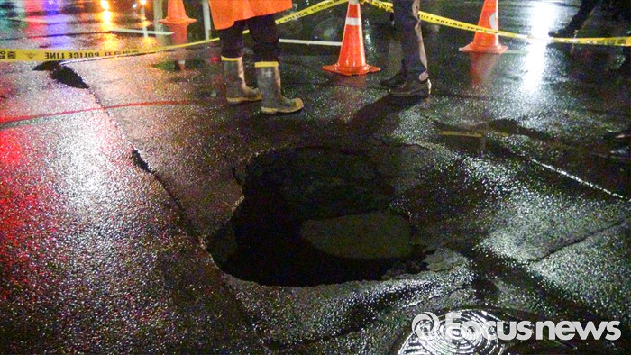 잠실에 거주하는 이민지(28·여)씨는 “싱크홀 때문에 이사 갈 곳을 알아봐야 하나 싶을 만큼 불안한 것이 사실이다”라면서도 “싱크홀 얘기가 나올 때마다 제2롯데월드가 뭇매를 맞는 것 같은데, 무조건 롯데월드타워 탓만 하기 보다는 정확한 원인 규명을 통해 주민들이 안심할 수 있도록 시와 구청 등에서 조치를 하는 것이 우선이라고 본다”고 말했다.(서울=포커스뉴스) 6일 서울 송파경찰서와 소방당국은 전날 오후 11시경 서울 송파구 신천동 파크리오아파트 사거리 도로에서 지름 1.5m, 깊이 1.4m 크기의 지반침하 현상(싱크홀)이 발견됐다고 밝혔다. 이곳은 제2롯데월드와 한 블럭 떨어진 곳으로 작년과 재작년에도 이 일대에서 싱크홀이 잇따라 발생했다. <사진제공= 송파소방서> 2016.07.06 포커스포토
