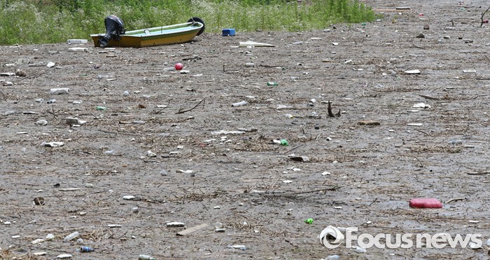 (옥천=포커스뉴스) 중부지방에 내린 집중호우로 7일 오전 충북 옥천군 군북면 대청호일대에 많은 양의 쓰레기 유입돼 있다.