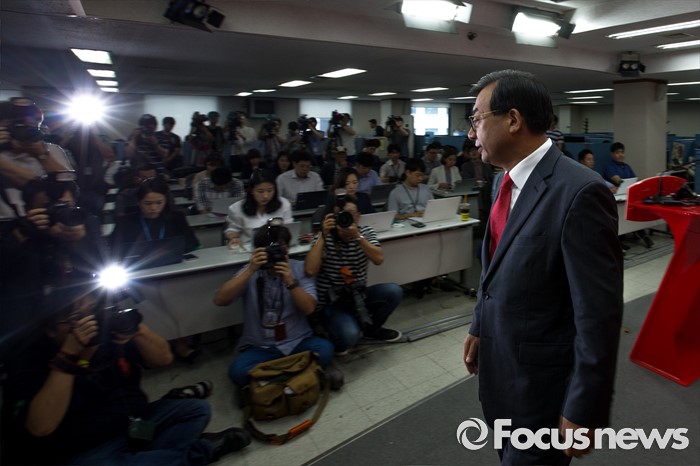 (서울=포커스뉴스) 이정현 새누리당 의원이 7일 오전 서울 여의도 새누리당사에서 오는 8월 당 대표를 선출하는 전당대회에 후보로 출마하겠다는 입장을 밝힌 뒤 기자회견장을 나서고 있다.