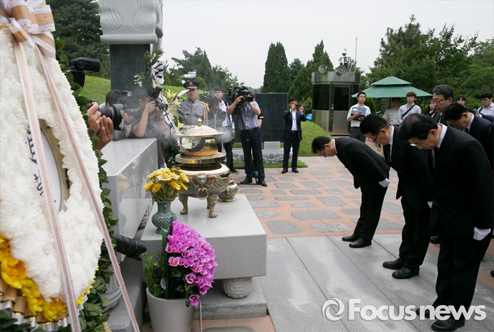 (서울=포커스뉴스) 박지원 국민의당 비상대책위원장과 비대위원 등이 7일 오전 동작구 국립서울현충원을 방문해 故 김대중 전 대통령 묘소 참배를 하고 있다.