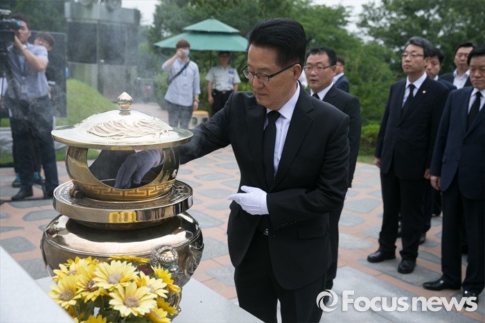 DJ 묘소 참배하는 박지원