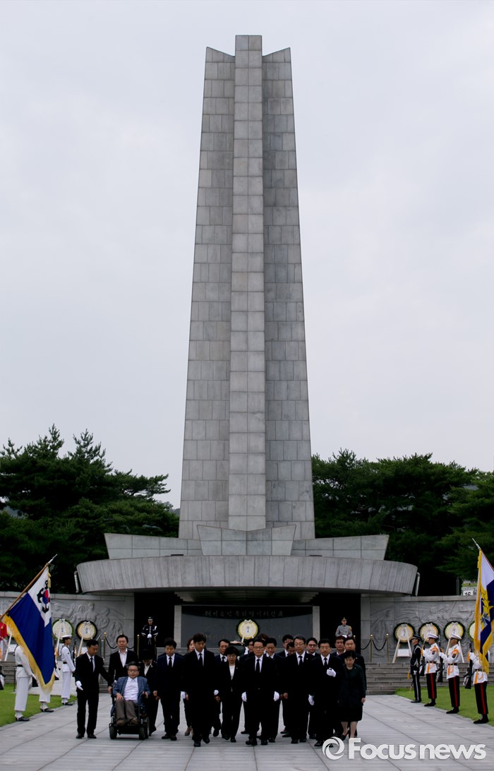 (서울=포커스뉴스) 박지원 국민의당 비상대책위원장과 비대위원 등이 7일 오전 동작구 국립서울현충원을 방문해 현충탑 참배를 마친 뒤 이동하고 있다.