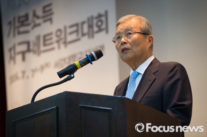(서울=포커스뉴스) 김종인 더불어민주당 비상대책위원회 대표가 7일 오전 서울 서강대학교 다산관에서 열린 제 16차 기본소득지구네트워크 대회에서 축사를 하고 있다. 이번 16차 대회는 아시아에서는 처음 열리는 기본소득 국제 대회로 세계 23개국에서 기본소득 운동을 벌이는 활동가와 이론가들이 참석한다.
