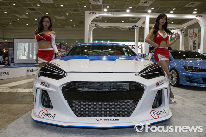 (서울=포커스뉴스) 7일 오전 서울 강남구 코엑스에서 열린 제14회 서울오토살롱에서 레이싱모델이 튜닝차량을 선보이고 있다.