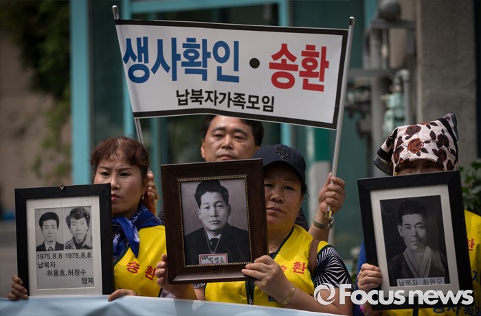 (서울=포커스뉴스) 납북자가족모임과 국군포로가족회 회원들이 7일 오후 서울 서초구 민주사회를위한변호사모임 사무실 앞에서 '납북자들에 대한 인신보호법상 구제 청구' 기자회견을 하고 있다.
