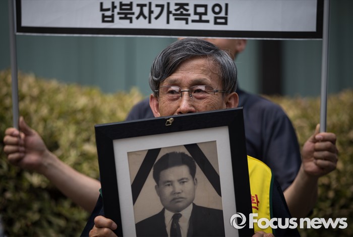 (서울=포커스뉴스) 납북자가족모임과 국군포로가족회 회원들이 7일 오후 서울 서초구 민주사회를위한변호사모임 사무실 앞에서 '납북자들에 대한 인신보호법상 구제 청구' 기자회견을 하고 있다.