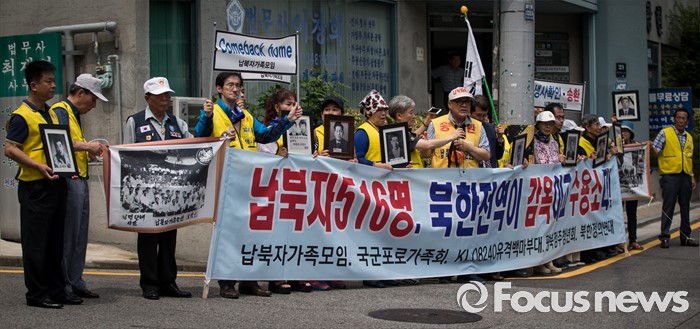 (서울=포커스뉴스) 납북자가족모임과 국군포로가족회 회원들이 7일 오후 서울 서초구 민주사회를위한변호사모임 사무실 앞에서 '납북자들에 대한 인신보호법상 구제 청구' 기자회견을 하고 있다.