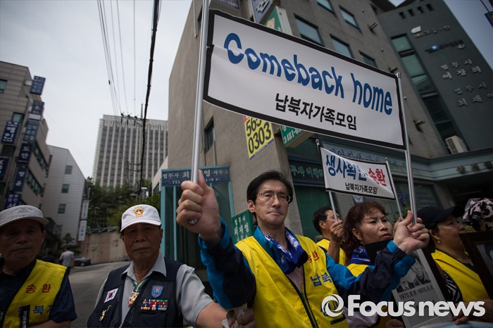 (서울=포커스뉴스) 납북자가족모임과 국군포로가족회 회원들이 7일 오후 서울 서초구 민주사회를위한변호사모임 사무실 앞에서 '납북자들에 대한 인신보호법상 구제 청구' 기자회견을 하고 있다.