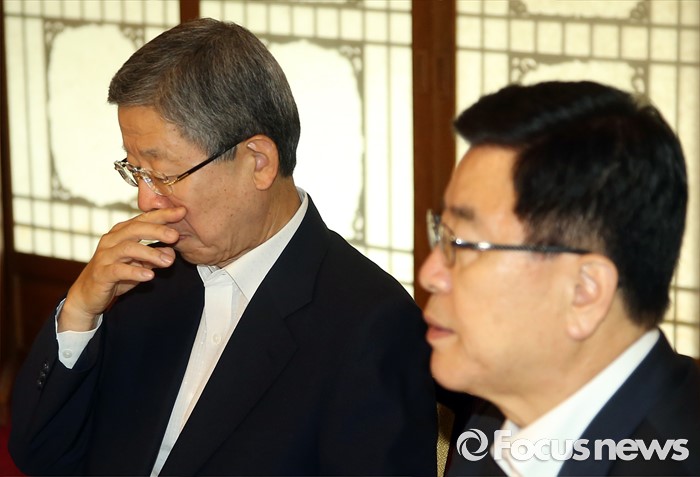 (서울=포커스뉴스) 7일 오후 서울 종로구 삼청동 국무총리공관에서김희옥(왼쪽) 새누리당 혁신비상대책위원장이 당·정·청 정책조정협의회에 참석하고 있다.