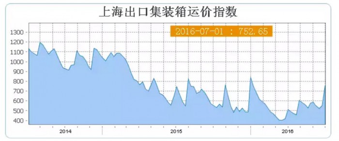 상하이항운교역소에 따르면 7월 첫째 주 상하이발 컨테이너선 운임지수(SCFI)는 3분기 성수기를 맞아 전주 대비 36%가량 상승한 752를 기록했다. 하지만 이는 2014년 동기 평균 운임 지수가 1100 정도로 올랐던 것에 비하면 매우 낮은 수준이다.