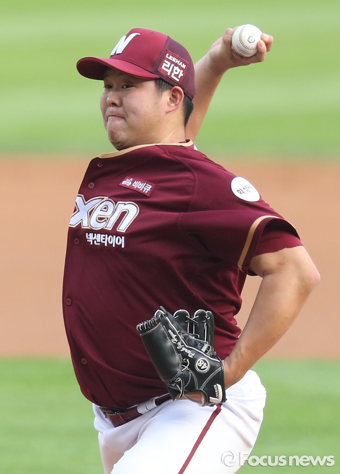 (서울=포커스뉴스) 6일 서울 잠실구장에서 열린 2016 프로야구 넥센-두산 경기에서 1회말 넥센 선발투수 박주현이 투구하고 있다.