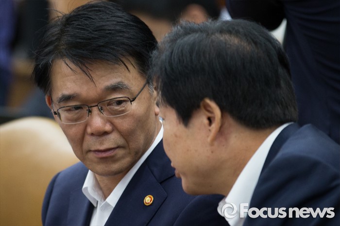 (서울=포커스뉴스) 강호인(왼쪽) 국토교통부 장관과 김영석 해양수산부 장관이 8일 오전 서울 종로구 정부서울청사에서 열린 제182차 대외경제장관회의에 자리해 대화를 나누고 있다.