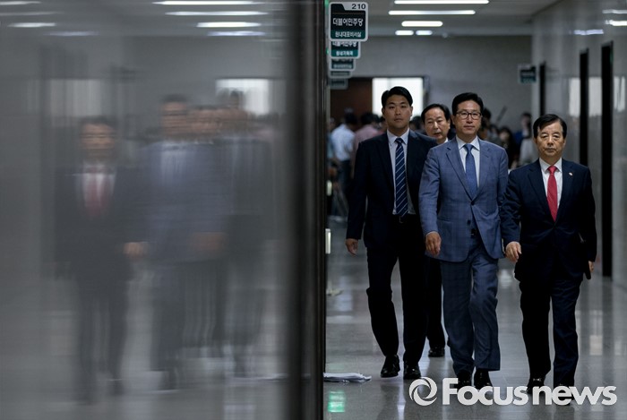 | △ 더민주 지도부 면담 위해 이동하는 국방부 장관 |