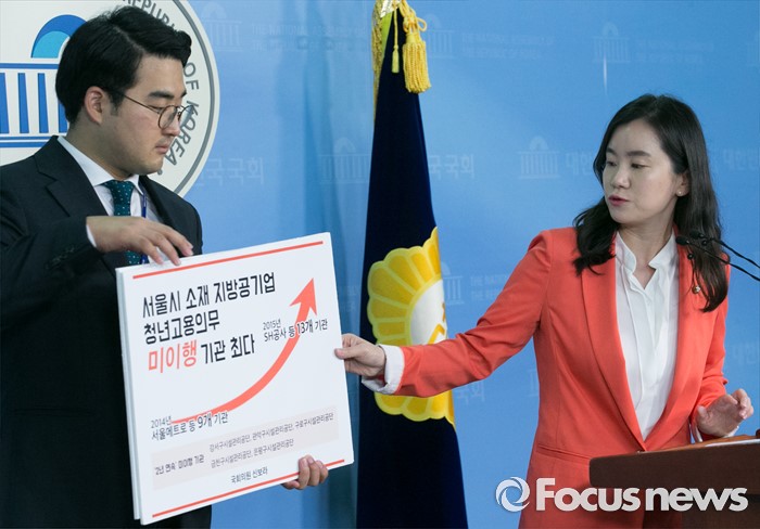 (서울=포커스뉴스) 신보라 새누리당 의원이 8일 오전 서울 여의도 국회 정론관에서 청년고용 의무이행 관련 기자회견을 하고 있다.