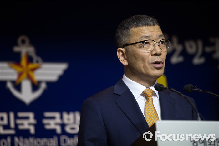 (서울=포커스뉴스) 8일 오전 서울 용산구 국방부 브리핑실에서 류제승 국방부 국방정책실장이 주한미군 사드(THAAD) 배치 결정과 주한민국의 사드 배치 가능성에 대한 공식협의 개시를 발표하고 있다.