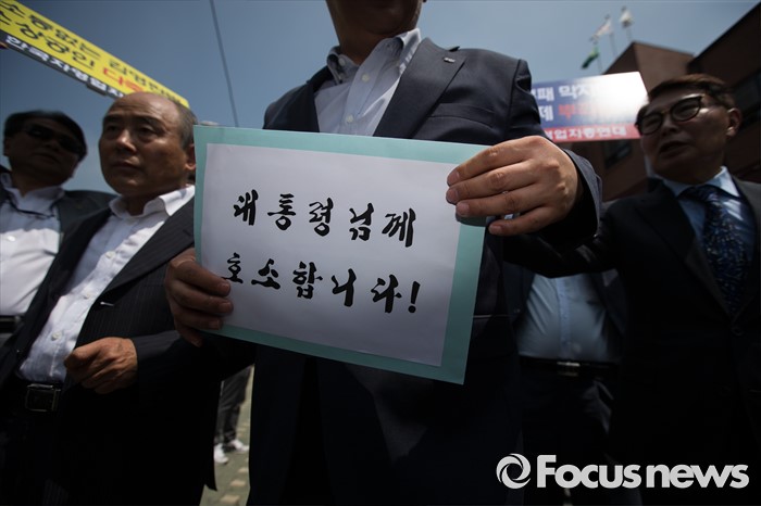 (서울=포커스뉴스) 한국자영업자총연대 등 소상공인 단체가 8일 오전 서울 종로구 청운효자동주민센터 앞에서 '부정청탁 및 금품 등 수수의 금지에 관한 법률(김영란법)' 시행저지 기자회견을 열고 최승재 소상공인연합회장(가운데)이 대통령에게 전하는 호소문을 들고 청와대를 향하고 있다.