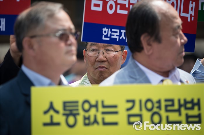 (서울=포커스뉴스) 한국자영업자총연대 등 소상공인 단체가 8일 오전 서울 종로구 효자동주민센터 앞에서 김영란법 시행 저지와 중소상공인 자영업자 발전대책 촉구 공동 기자회견을 하고 있다.