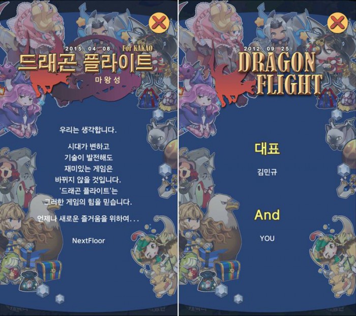 한편 올해로 서비스 4주년을 맞는 드래곤 플라이트는 동시접속자 850만명, 누적 다운로드 2500만건 등을 기록한 넥스트플로어의 대표 타이틀로 현재까지도 구글플레이 기준 2~30위 권을 유지하며 인기리에 서비스 되고 있으며, 지난해에는 게임문화 저변을 확대하는 차원에서 업계 최초로 게임 내 확률형 아이템 당첨 확률을 자발적으로 공개한바 있다.드래곤플라이트 엔딩 크레디트 <사진제공=넥스트플로어>