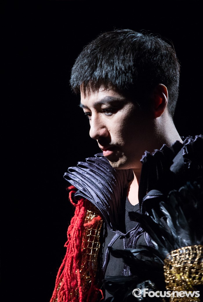 (서울=포커스뉴스) 8일 오후 서울 종로구 동숭아트센터에서 열린 오페라연극 '맥베스' 프레스콜에 참여한 배우 김재만이 주요장면을 시연하고 있다.