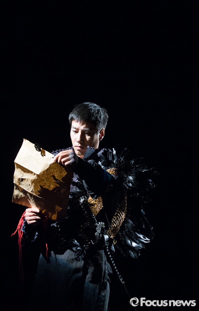 (서울=포커스뉴스) 8일 오후 서울 종로구 동숭아트센터에서 열린 오페라연극 '맥베스' 프레스콜에 참여한 배우 김재만이 주요장면을 시연하고 있다.