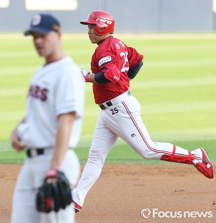 (서울=포커스뉴스) 8일 서울 잠실구장에서 열린 2016 프로야구 KIA-두산 경기 1회초 2사 1루에서 KIA 이범호가 좌월 2점 홈런을 치고 베이스를 돌고 있다.