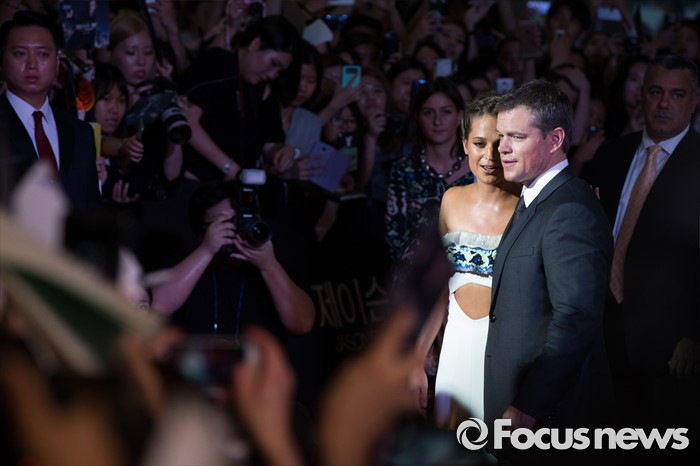 (서울=포커스뉴스) 8일 오후 서울 영등포구 타임스퀘어에서 열린 영화 '제이슨 본' 레드카펫 행사에 참석한 배우 알리시아 비칸데르(왼쪽)와 맷 데이먼이 포즈를 취하고 있다.