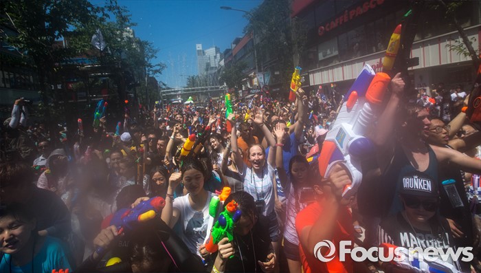 (서울=포커스뉴스) 9일 오후 서울 서대문구 신촌 연세로에서 열린 '2016 물총축제' 에 참가한 시민들이 서로 물총을 쏘며 즐거운 시간을 보내고 있다.