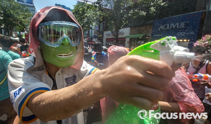 (서울=포커스뉴스) 9일 오후 서울 서대문구 신촌 연세로에서 열린 '2016 물총축제' 에 참가한 시민들이 서로 물총을 쏘며 즐거운 시간을 보내고 있다.