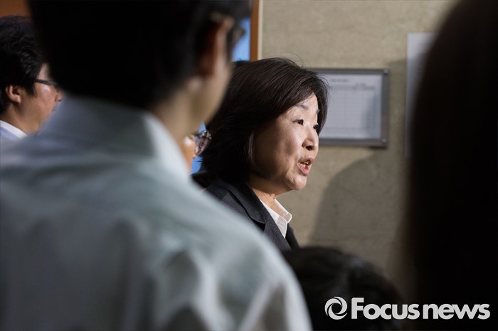 (서울=포커스뉴스) 10일 오전 서울 영등포구 국회에서 심상정 정의당 삼임대표가 사드 배치 관련 긴급기자회견을 마친 뒤 브리핑실 밖에서 취재진의 대답하고 있다.