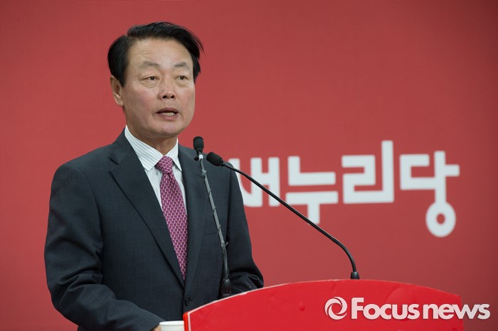 (서울=포커스뉴스) 10일 오후 서울 영등포구 새누리당 당사에서 한선교 새누리당 의원이 당대표 출마 기자회견을 하고 있다.