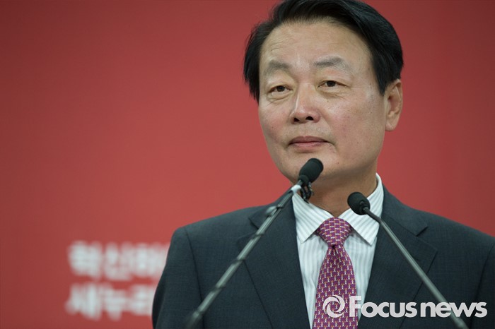 (서울=포커스뉴스) 10일 오후 서울 영등포구 새누리당 당사에서 한선교 새누리당 의원이 당대표 출마 기자회견을 하고 있다.