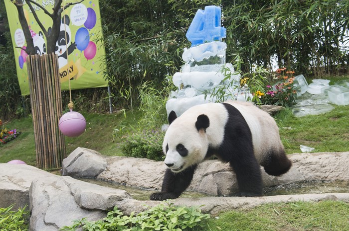 (서울=포커스뉴스) 10일 오전 경기도 용인시 에버랜드에서 판다 러바오(수컷·2012년 7월 28일생)와 아이바오(암컷·2013년 7월 13일생)의 네 번째와 세 번째 생일 잔치가 열렸다. 에버랜드는 오는 28일까지 판다 생일주간으로 지정해 각종 이벤트 행사를 진행한다. <사진제공=에버랜드>