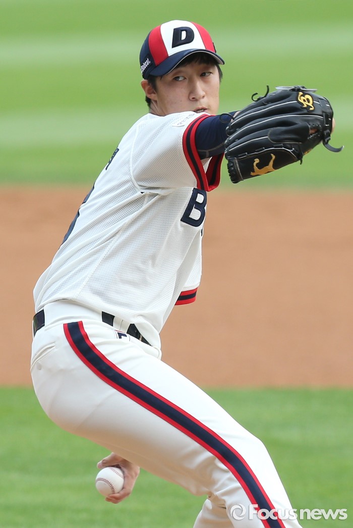 (서울=포커스뉴스) 10일 서울 잠실구장에서 열린 2016 프로야구 KIA-두산 경기에서 1회초 두산 선발투수 허준혁이 투구하고 있다.