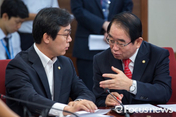 또 "중국은 한반도의 사드 배치를 비판하면서 외교 갈등으로 몰아갈 게 아니라 미사일 실험을 포기하도록 북한을 설득하는 일이 먼저"라며 "북한은 시위라도 하듯 사드 발표 다음 날 잠수함탄도미사일을 발사했다. 북한이 미사일 발사하고 있는데 아무 대비 안 한다면 그게 더 이상하다"라고 사드 배치의 필요성을 역설했다.박명재(오른쪽) 새누리당 사무총장과 김영우 의원이 11일 오전 서울 여의도 새누리당사에서 열린 혁신비상대책위원회의에 참석해 대화 하고 있다. 2016.07.11 강진형 기자