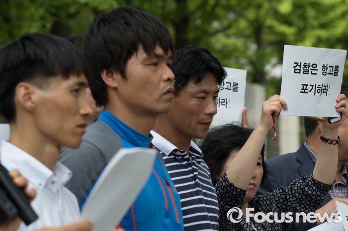 (서울=포커스뉴스) 11일 오전 서울 서초구 대검찰청 앞에서 사건의 피해자와 유가족들이 '삼례 나라슈퍼 3인조 강도치사 사건' 진정서 제출 기자회견을 하고 있다.