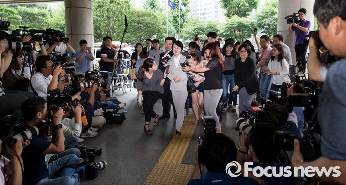 | △ 영장실질심사차 법원 출석하는 박선숙 |