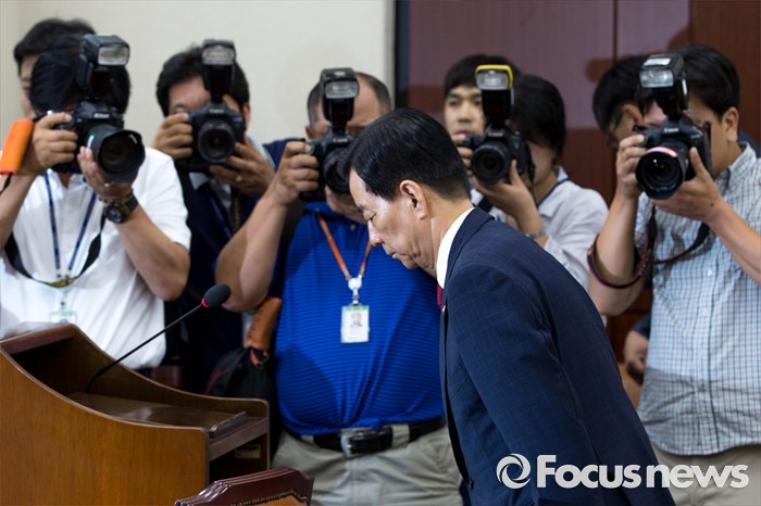 (서울=포커스뉴스) 한민구 국방부 장관이 11일 오후 서울 여의도 국회에서 열린 국방위원회 전체회의에 참석해 사드배치관련 상황보고에 앞서 인사 하고 있다.