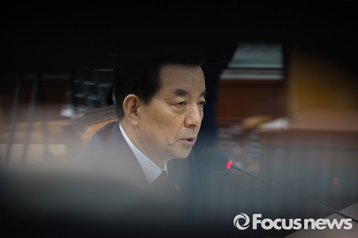 (서울=포커스뉴스) 한민구 국방부 장관이 11일 오후 서울 여의도 국회에서 열린 국방위원회 전체회의에 참석해 사드배치 관련된 국방위원 질의에 답하고 있다.