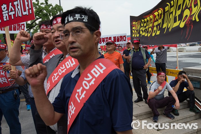 (서울=포커스뉴스) 금강산관광 중단 8년째를 맞아 금강산관광 중단 피해대응 고성군 추진위원회 회원들이 11일 오후 서울 종로구 서울정부청사앞에서 지원대책 마련을 촉구하며 집회를 갖고 있다.