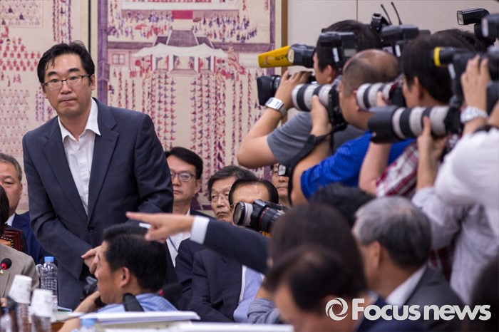 (서울=포커스뉴스) 민중을 개, 돼지로 표현한 발언으로 비판을 받고 있는 나향욱 교육부 정책기획관이 11일 오후 서울 여의도 국회에서 열린 교육문화체육관광위원회 전체회의에 참석해 교문위원들의 질의를 받기 위해 연단으로 향하고 있다.