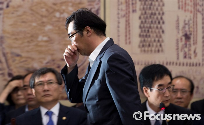 (서울=포커스뉴스) 민중을 개, 돼지로 표현한 발언으로 비판을 받고 있는 나향욱 교육부 정책기획관이 11일 오후 서울 여의도 국회에서 열린 교육문화체육관광위원회 전체회의에 참석해 교문위원들의 질의를 받기 위해 연단으로 향하고 있다.