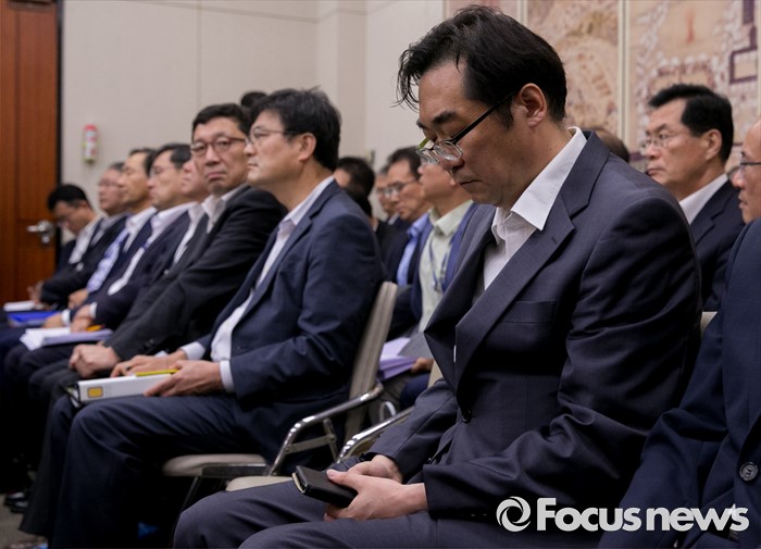 (서울=포커스뉴스) 11일 오후 서울 여의도 국회에서 열린 교육문화체육관광위원회 전체회의에 "민중은 개·돼지"라고 발언해 물의를 빚은 나향욱 교육부 정책기획관이 참석해 자리하고 있다.