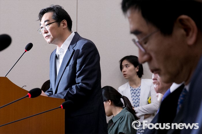 (서울=포커스뉴스) 11일 오후 서울 여의도 국회에서 열린 교육문화체육관광위원회 전체회의에 "민중은 개·돼지"라고 발언해 물의를 빚은 나향욱 교육부 정책기획관이 참석해 의원들의 질의에 답하고 있다. 오른쪽은 이준식 사회부총리 겸 교육부 장관.